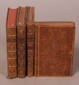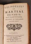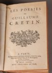 enrichie des Poésies diverses de Jehan Molinet, chanoine de Valenciennes.(Joint) : CRÉTIN (Guillaume). Les Poesies. Paris, Antoine-Urbain Coustelier, 1723. In-12, veau fauve marbré, dos à nerfs orné, tranches rouges. (petite mouillure claire sur les premiers feuillets).C'est lui-même que Rabelais désigne sous le nom de Raminagrobis.(Joint) MARTIAL de Paris, dit d'Auvergne. Poésies. Paris, Antoine Urbain Coustelier, 1724. 2 volumes in-12 reliés basane fauve marbrée de l'époque, dos à nerfs ornés, triple filet doré sur les plats, tranches jaspées. (2 coiffes et coins émoussés). Les 4 volumes.