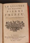 BOURDIGNÉ (Charles). La Légende de maistre Pierre Faifeu. Paris, Antoine-Urbain Coustelier, 1723. In-12, veau fauve marbré, dos à nerfs orné, tranches rouges.Célèbre légende angevine, dont la première édition parut en 1526. Celle-ci est...