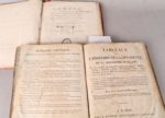 (1797). In-4, 3 parties en un volume in-4, 62 pp., 1 tableau dépl. ; 43 pp., 2 tableaux dépl. ; 16 pp. et 9 tableaux dont 6 dépliants. Cartonnage époque. (reliure usée, mouillure en pied de volume, petite galerie de vers marginale dans les derniers feuillets). (JOINT) : SOULAVIE (J.-L.). Tableaux de l'histoire de la décadence de la Monarchie française et des progrès de l'autorité royale à Copenhague, Madrid, Vienne, (). Paris, Duprat & Letellier, 1803. In-4, 24 pp., 1 planche dépliante et 2 grand tableaux dépliants dont un en 2 parties, demi-basane brune, dos muet. (défraichi). Les 2 volumes :
