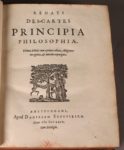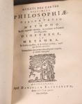 Frottements sur les mors, coins usés.Titre (et « Content » au verso, 1 f. « Typographus » et portrait au verso, Principia Philosophiæ, Amselodami, Danielem Elzevirium, 1664 : 18 ff, 222 pp., 1 f. blanc - Specimina Philosophiae seu Dissertatio de Methodo. Id. : 8 ff., 248 pp. - Passiones Animae. Amstelodam, Ludovicum & Danielem Elzevirios, 1664 : 12 ff., 92 pp., 2 ff.Chaque partie a son titre particulier, et de nombreuses figures.Quatrième édition collective conforme à la description de Guibert (Descartes, pp. 230-231). : composition et pagination identique à l'édition de 1658.