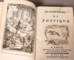 restaurées, coins frottés). (8)-450-(28) pp., frontispice, vignette de titre, 11 planches gravées sur cuivre la plupart dépliantes, 22 vignettes d'en-têtes.Édition originale du premier ouvrage composé par la marquise Du Châtelet férue de mathématiques, à l'instigation de Voltaire dont elle fut la maîtresse et qui ne cessa jamais de soutenir ses travaux scientifiques.