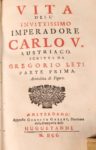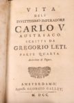 LETI (Gregorio). Vita dell' invittissimo imperadore Carlo V. Amsterdamo, Giorgio Gallet, 1700. 4 volumes in-8 reliés vélin rigide, pièce de titre mar blond, tranches jaspées. (feuillets de planches souvent brunis).Illustré de 39 planches hors-texte