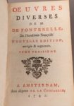 [Livres anciens divers]. 56 volumes in-12 des XVII° et XVIII° siècles, reliés de l'époque.Dont : MALEBRANCHE. De la recherche de la vérité. Où l'on traite de la Nature de l'Esprit de l'homme, 4 volumes. - FONTENELLE. OEuvres, 4 volumes. -...