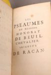 Biblia sacra, 6 volumes. - Théatre de QUINAULT, 5 volumes. - BOILEAU. OEuvres, 2 volumes. - MAIMBOURG (Louis). Histoire de l'arianisme, 3 volumes. - NICOLE. Lettres, 2 volumes. - OLIVET. Remarques sur la langue françoise. - GRESST. OEuvres. - URFE. L'Astrée, 9 volumes. - etc.