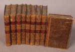 les plats, tranches marbrées (coins émoussés, petit manque marginal de papier, sans atteinte au texte à un feuillet du T.5). Cette réédition contient des ouvrages qui n'avaient pas encore été traduits, mais elle ne présente pas tous les ouvrages de l'auteur, tels que les poésies, contes et compositions dramatiques. Portrait-frontispice par A. Brunzino, gravé par Levasseur, planches hors texte dans le tome 5.
