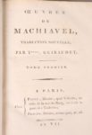 MACHIAVEL. Oeuvres de Machiavel. Traduction nouvelle, par T. Guiraudet. Paris, Potey, Pichard, an VII (1799). 9 vol. in-8, basane mouchetée de l'époque, dos lisses ornés, pièces de titre et tomaison bordeaux, guirlande dorée d'encadrement sur...