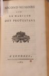 [MALESHERBES (Chrétien-Guillaume de Lamoignon de)]. Mémoire sur le mariage des protestans en 1785. (Suivi de) Second mémoire sur le mariage des protestans.Londres 1787. 2 tomes en un volume in-8 relié veau brun époque, dos à nerfs. (coins et...