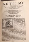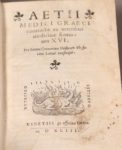 (accrocs aux mors en pied de volume).(8)-469-(1) ff. - Traduction latine par Cornarius des oeuvres de ce célèbre médecin grec du V° siècle. Marque de l'imprimeur sur le verso du dernier feuillet (masque à trois visages). Rare.