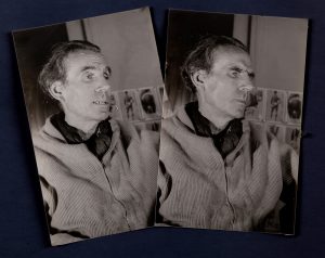 CÉLINE (Louis-Ferdinand), photographies. Portraits de l'écrivain, années 1950. 2 épreuves gélatino-argentiques des années 1960. 14,4 × 9,4 cm.