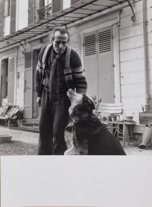 DOUCET (Louis). Louis-Ferdinand Céline, portrait à Meudon. 1957-1959. Épreuve gélatino-argentique des années 1990. Signature du photographe au dos en dessous de l'envoi " À Alphonse Boudard ce regard du GRAND…bien fidèlement ". Mention "...