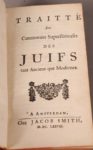 tranches rouges. (2 coins émoussés, petit accroc à la coiffe de pied).Titre « Reflexions », Titre « Traité des Cérémonies », (26)-531-(29)-30 pp. Première édition française du Tractatus theologico-politicus. La traduction est due Gabriel de Saint-Glen et parut sous trois titres différents afin de déjouer la censure : La Clef du sanctuaire, Réflexions curieuses d'un esprit désintéressé et Traité des cérémonies superstitieuses des Juifs. Notre exemplaire possède en plus la page de titre sous « Traité des Cérémonies ».Dans cette traduction sont publiées pour la première fois les annotations manuscrites portées par Spinoza sur son exemplaire, dans l'appendice intitulé "Remarques curieuses et nécessaires pour l'intelligence de ce livre" (30 dernières pages de l'ouvrage).