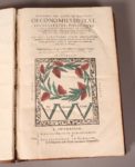 François. A Amstelredam, A l'enseigne des trois Vertus couronnees d'Amaranthe [Château de Sully], Chez Alethinosgraphe de Clearetimelee, & Graphexechon de Pistariste, s.d. (1638), 2 tomes en un volume in-folio (23,5x36,5cm), (8) 535pp. ; (8) 459 pp., relié veau blond ancien, dos à 6 nerfs, encadrement d'un double filet et fleuron doré dans les entre-nerfs, filet doré d'encadrement sur les plats. (coiffe de tête abimée, frottements, quelques rousseurs éparses, cahier Ee iii du T. 2 dérelié). Edition originale, rare. Avec le mot « soldats » sur le titre, écrit avec un s minuscule, le verso étant blanc, et le texte français et latin des Parallèles de César et de Henry le Grand imprimé en caractères romains (p.470 à 488 du tome I), ce qui la distingue de la contrefaçon et des éditions suivantes où il est imprimé en caractères italiques. Grande vignette de titre rehaussée de vert et rouge sur les deux pages de titre figurant les trois vertus (foi, vertu, charité) couronnées d'amarante. Ex-libris « Fancicus Du Molinet 1659 ».
