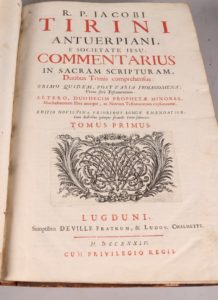 TIRIN (Jacob). Commentarius in Sacram Scripturam. Lugduni (Lyon), Deville et Chalmette, 1734. 2 volumes in-folio reliés veau époque, dos à nerfs ornés. (coiffes et coins usés, frottements sur les reliures). 6 tableaux dépliants.