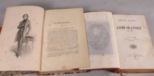 lithographiés.QUINET (Edgar). Le Livre de l'exilé, 1851-1870. Après l'exil manifestes et discours, 1871-1875. Paris, Dentu, 1875, in-8 relié plein chagrin rouge, dos à nerfs orné, triple filet doré sur les plats, dentelle dorée intérieure, tranches dorées. (rousseurs éparses). Portrait de Quinet en photoglyptie. 2 volumes.