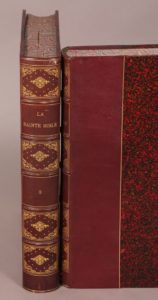 [DORÉ] La Sainte Bible, traduction nouvelle selon la Vulgate par. MM. J.-J. Bourassé et P. Janvier [...]. Dessins de Gustave Doré, ornementations du texte par H. Giacomelli. Tours A. Mame et fils 1866. 2 volumes in-folio reliés demi-chagrin...