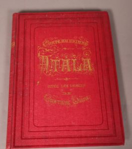 [DORE]. CHATEAUBRIAND (Francois-René de). Atala. Avec les dessins de Gustave Doré. Paris, Hachette, 1863, in-folio, cartonnage de l'éditeur percaline rouge, large titre doré sur le premier plat. (quelques roussurs claires).Premier tirage des 44...