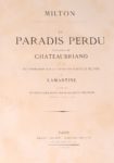 bois dont 30 hors texte sur fond teinté et protégés d'une serpente légendée.(JOINT) : MILTON. Le Paradis perdu. Traduction de Chateaubriand précédé de réflexions sur la vie et les écrits de Milton par Lamartine et enrichi de vingt-cinq magnifiques estampes originales gravées au burin sur acier. Paris, Amable Rigaud, 1863. In-folio, relié demi-chagrin rouge.Cette édition est illustrée de 3 portraits (Milton, Lamartine et Chateaubriand) et de 24 planches hors texte dont 16 d'après Johann Jacob Flatters, d'inspiration néo-classique. Les 2 volumes.