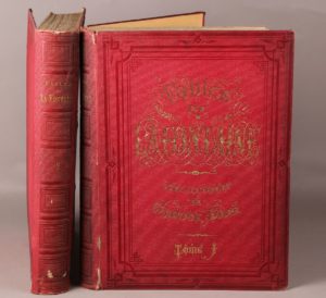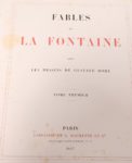 [DORÉ]. LA FONTAINE (Jean de). Fables. Dessins de Gustave Doré. Paris, L. Hachette et Cie, 1867. 2 volumes in-folio, cartonnage de l'éditeur percaline rouge, large titre doré sur le premier plat. (rousseurs, accidents aux reliures).