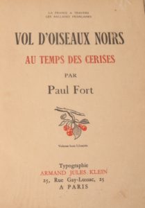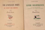 FORT (Paul). Vol d'oiseaux noirs au temps des cerises. - Livre d'espérance, la joie française vaincra les temps sans joie. Paris, Jules Klein, (1909). 2 volumes grand in-8 brochés.Exemplaires nominatifs sur japon. Envois autographes signés de...