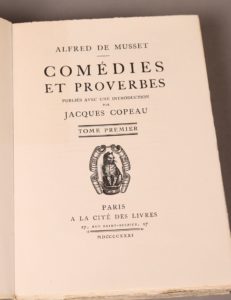Mario Prassinos. Un des 1050 num. sur alfa. - MUSSET (A. de). Comédies et proverbes. Introduction de Jacques Copeau. Paris, Cité des Livres, 1931. 2 volumes in-12 br. Num. sur vergé d'Arches. - LESAGE. Histoire de Gil Blas de Santillane. Introduction par René Bizet. Paris, Cité des Livres, 1929. In-12 br. Num. sur vergé d'Arches. - DRIAULT (Edouard). Le roi de Rome. Paris, Albert Morancé, s.d. In-8 carré, br. - MALRAUX. Des bas-reliefs aux grottes sacrées. Paris, Nrf, 1954. Petit in-4 cartonnage d'après la maquette de Paul Bonet. (un mors fendu). Tirage num. sur alfa. - REBOUX (Paul). Comment fut aimé Joséphine. Paris, Flammarion, 1935. In-12 br. (couverture endommagée). Un des 100 exempl. num. sur vélin. - CHODERLOS DE LACLOS. Les liaisons dangereuses. Club Français du Livre, 1965. In-8, cartonnage éditeur.
