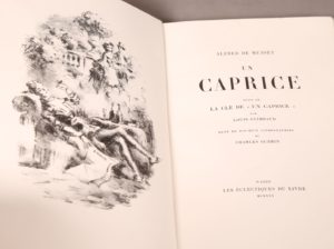 MOLIERE. Monsieur de Pourceaugnac. Illustré par G. Trilleau. Paris, Les Pharmaciens Bibliophiles, 1933. Tirage à 175 exemplaires numérotés et nominatifs (n°141, Dr. Georges Rouhier). - MUSSET. Un caprice. Illustré de 18 lithographies de Charles...