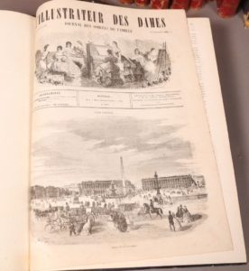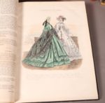 1860-1863, 3 volumes in-4 reliés demi-veau rouge. 37 planches en couleurs (la plupart de Jules David). - L'illustrateur des Dames. 1862-1863, 4 volumes in-4 reliés demi-veau bleu. 45 planches en couleurs. Ensemble de 21 volumes reliés. 386 gravures de mode hors-texte en couleurs
