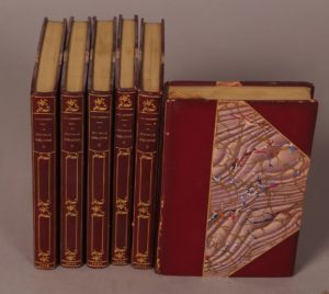 ROUSSEAU. La Nouvelle Heloise. Dessins de Edmond Hedouin gravé par lui-même et Toussaint ; Eaux-fortes de Lalauze. Paris, Librairie des Biblophiles, 1889. 6 volumes in-12 reliés demi-maroquin bordeaux à coins, dos lisses ornés, têtes dorées,...
