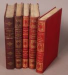 VERNE (Jules). La Jaganda. - Les enfants du capitaine Grant. - Vingt Mille Lieues sous les mers. - L'Ile à hélice. - L'Ile mystérieuse. Paris Hetzel, 5 volumes grand in-8 reliés demi-chagrin rouge, dos à nerfs ornés, tranches dorées pour 4...