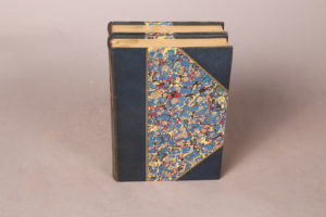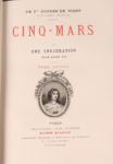VIGNY (A. de). Cinq mars ou une conjuration sous Louis XIII. Paris, Quantin, 1889.2 volumes in-4, demi-maroquin bleu-nuit à coins, dos lisses ornés de fleurons et filets en long dorés, couvertures et dos conservés. (Pouillet).Première édition...