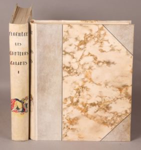 [BAGARRY]. Florilège des conteurs galants du XVIIIè siècle. Illustrations d'Adrien Bagarry. Paris, Librairie de France, 1931-1932. 2 volumes in-4 reliés à la bradel demi-vélin ivoire à coins, titre manuscrit sur les dos ornés de deux dessins...