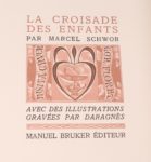 [DARAGNES]. SCHWOB (Marcel). La croisade des enfants. Avec des illustrations gravées par Daragnès. Paris, Manuel Bruker, 1930. In-4 en feuilles, couverture et chemise cartonnée à rabat et dos vélin, sous étui.17 gravures originales sur bois en...