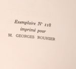 titre et 23 gravures à l'eau forte, dont 4 à double page). Edition tirée à 175 exemplaires numérotés sur Vélin du Marais, celui-ci un des 150 réservés aux membres de la Société (n°118, Dr. Georges Rouhier).Exemplaire enrichi d'une des 25 suites de toutes les gravures, du Menu (double page) du Diner du Greco, 8 mai 1956 illustré d'une grande composition originale de Decaris ; et un ex-libris gravé par Decaris, Dr. Med. Olivier, 1° Janvier 1956. Signé et numéroté 1/34.
