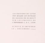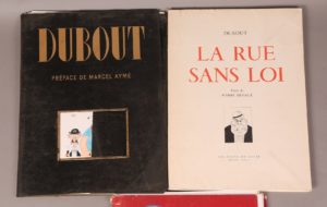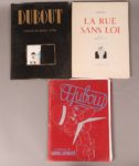 DUBOUT. La rue sans loi. Texte de Pierre Devaux. Monte-Carlo, Editions du Livre, 1944. In-4 broché. 32 dessins de Dubout dont 3 en couleurs. Tirage sur grand vélin filigrané. (JOINT) : Dubout, préface de Gabriel Chevallier (et) de Marcel Aymé....