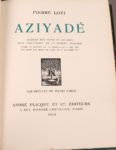 [FARGE]. LOTI (Pierre). Aziyadé. Aquarelles de Henri Farge, Paris, Andre Plicque, 1928. In-4 relié demi-maroquin à coins, dos à quatre nerfs, couvertures et dos conservés. (G. Weissenbach). dos insolé.22 aquarelles par Henri Farge, dont un...