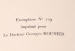 couverture et de grandes lettrines rouges. Tirage limité à 200 exemplaires numérotés sur vélin BFK de Rives. (n° 129, imprimé pour le Dr. Georges Rouhier).