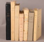 d'Arches (n°141, imprimé pour le Dr. Georges Rouhier). - Les Contemporains. Charles Maurras. Editions de la Revue Le Capitole, 1925. Petit in-4 broché, chemise et étui. Un des 80 exemplaires de tête nominatifs sur Japon (n° 25 pour Mr. Reginald Norris) et signés par Charles Maurras, comprenant 2 hors-texte inédits avec trois suites de chacun de ces hors-texte numérotés et signés par l'artiste Szekely. - MAURRAS (Ch.) L'avenir de l'intelligence. Dessins, bandeaux et culs-de-lampe de Maurice Denis. Paris, Nouvelle Librairie Nationale, 1925. In-8 broché. Un des 500 exemplaires numérotés sur papier Madagascar (n° 400). - BARRES (Maurice). Un jardin sur l'Oronte. Orné de six pointes sèches de Hermine David. Paris, Libr. de la Revue Franç., s.d. In-8 broché, chemise et étui. Tirage à 1100 exemplaires, celui-ci un des 10 de tête sur Japon (n°1). - TAILHADE (Laurent). Epîtres des hommes obscurs du chevalier Ulrich Von Hutten. Paris La Connaissance 1924. In-8 broché sous couverture rempliée, grandes marges conservées. Tirage de l'édition de luxe, un des 524 sur vergé de pur fil Lafuma. Illustré de 2 portraits de Hutten, d'un de Luther et d'un fac similé du manuscit de Tailhade. - DUHAMEL (Georges). La pierre d'Horeb. Gravures sur bois originales de Paul-Emile Colin. Paris, Manuel Brucker, 1927. Grand in-8 broché. Un des 300 exemplaires sur vélin d'Arches (n°130). - HERMANT (A.). Le nouvel Anacharsis, Promenade au jardin des Lettres Grecques. Frontispice et vignettes par Carlège. Paris, Chamontin, 1928. In-8 broché. (rousseurs sur la couverture). Un des 30 exemplaires numérotés sur Hollande (n°52). Les 7 volumes.