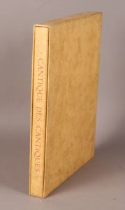 JOU. Le cantique des cantiques. Paris, Les Médecins bibliophiles, 1938. In-4, broché, couverture rempliée illustrée, chemise, étui.23 bois originaux en deux teintes de Louis Jou. Tirage limité à 130 ex. sur vélin d'Arches, celui-ci n°88...