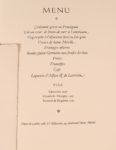 imprimé pour le Dr. Georges Rouhier. Exemplaire enrichi du menu en double page au format du livre, illustré d'une composition de Louis Jou du diner du 5 juillet 1938, signé de l'artiste au verso. Et, DESSIN ORIGINAL aquarellé de la planche du Chant V, sur un tirage d'épreuve d'un feuillet du Chant VII.