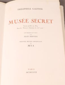 [LE RICHE]. GAUTIER (Théophile). Musée secret. Introduction par Jean Servien, pointes sèches originales de Mya. Paris, 1937. In-4 en feuilles, couverture rempliée.10 pointes sèches originales en noir à pleine page par Henri Le Riche sous le...