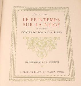 [RACKHAM]. GUYOT (Charles). Le Printemps sur la neige et d'autres Contes du bon vieux temps. Illustrations de A. Rackham. Paris, Éd. d'art H. Piazza, 1922. In-4 broché, couverture illustrée. Illustrée de compositions d'Arthur Rackham : 14 en noir...