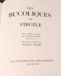 [ROCHE]. VIRGILE. Les Bucoliques. Texte établi et traduit par un auteur incertain MDCCLI.Gravures sur cuivre de Marcel Roche. Paris, Les Pharmaciens Bibliophiles, 1952. In-4, en feuilles, couverture rempliée, chemise et étui.33 gravures sur cuivre...