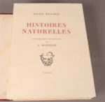[ROUBILLE]. RENARD (Jules). Histoires naturelles. Lithographies en couleurs de A. Roubille. Paris, Manuel Bruker, 1928. In-4 en feuilles, couverture rempliée, chemise et étui. (charnières de la chemise abimées, fentes à l'étui).Premier tirage...