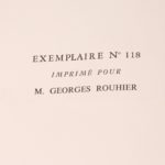 double page en sépia, 1 frontispice, 30 in-texte dont 14 à pleine page et 2 à double-page. Tirage limité à 150 exemplaires numérotés sur Rives, celui-ci nominatif (n° 118, Dr. Georges Rouhier).
