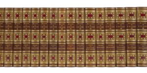Vingt volumes in-8, bradel demi-maroquin lavallière avec coins, dos à nerfs ornés avec pastilles mosaïquées de maroquin rouge, non rognés, couvertures et dos conservés (E. Carayon).