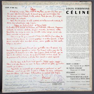 pseudonyme de François Gardet) d'après les textes de Céline. Sur la pochette du disque (pochette seule, un peu usée aux bords, sans le disque).