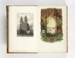 Vignette sur le titre, trois pages de dédicace imprimées en vert sur fonds chamois dans des encadrements historiés tirés en bistre, 33 planches hors texte dont le frontispice en or et en couleurs, 15 vignettes gravées sur bois, 10 portraits gravés sur acier et 6 planches de blasons en couleurs. Nombreuses vignettes gravées sur bois dans le texte.