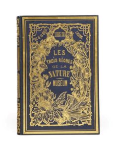 Deux parties en un volume grand in-8, reliure de l'éditeur en plein chagrin bleu nuit, grande plaque dorée signée Haarhaus sur les deux plats avec en lettres dorées le titre Les trois règnes de la nature.