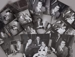 CÉLINE (Louis-Ferdinand) - ARLETTY - SIMON (Michel) Séances d'enregistrements de Céline avec Arletty et Michel Simon en 1955. 28 vues contretypes d'après les planches contact originales, réalisées en 1981. Cet ensemble comprend : 3 planches...