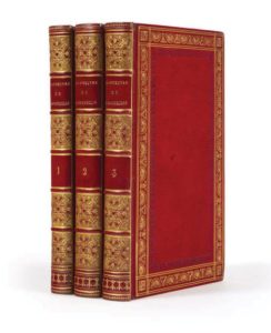 Trois volumes in-8, reliures de l'époque en maroquin rouge, guirlandes d'encadrement dorées et à froid sur les plats, dos à nerfs richement ornés au pointillé, roulette intérieure, tranches dorées (Thouvenin).