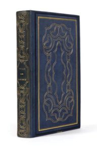 Grand in-8, reliure de l'époque en plein chagrin bleu nuit, sur les plats grand décor d'entrelacs tracés au double filet doré dans un encadrement d'un listel à froid et de deux filets dorés gras et maigre, dos orné de même, retour intérieur orné de trois filets dorés, tranches dorées.